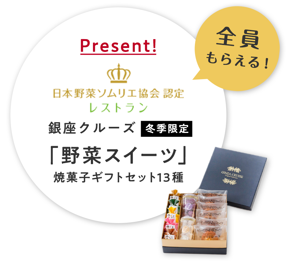 四季折々の新鮮な素材を使った創作料理で定評のある協会認定レストラン『銀座クルーズ』。 野菜ソムリエでもあるシェフは、野菜・果物の持つチカラに着目し、そのパワーを最大限に引き出した商品を開発しています。 今回は、冬季限定の焼菓子ギフトセット13種をお届けします! 野菜パワーで、今年も元気に健康に過ごしてみませんか?