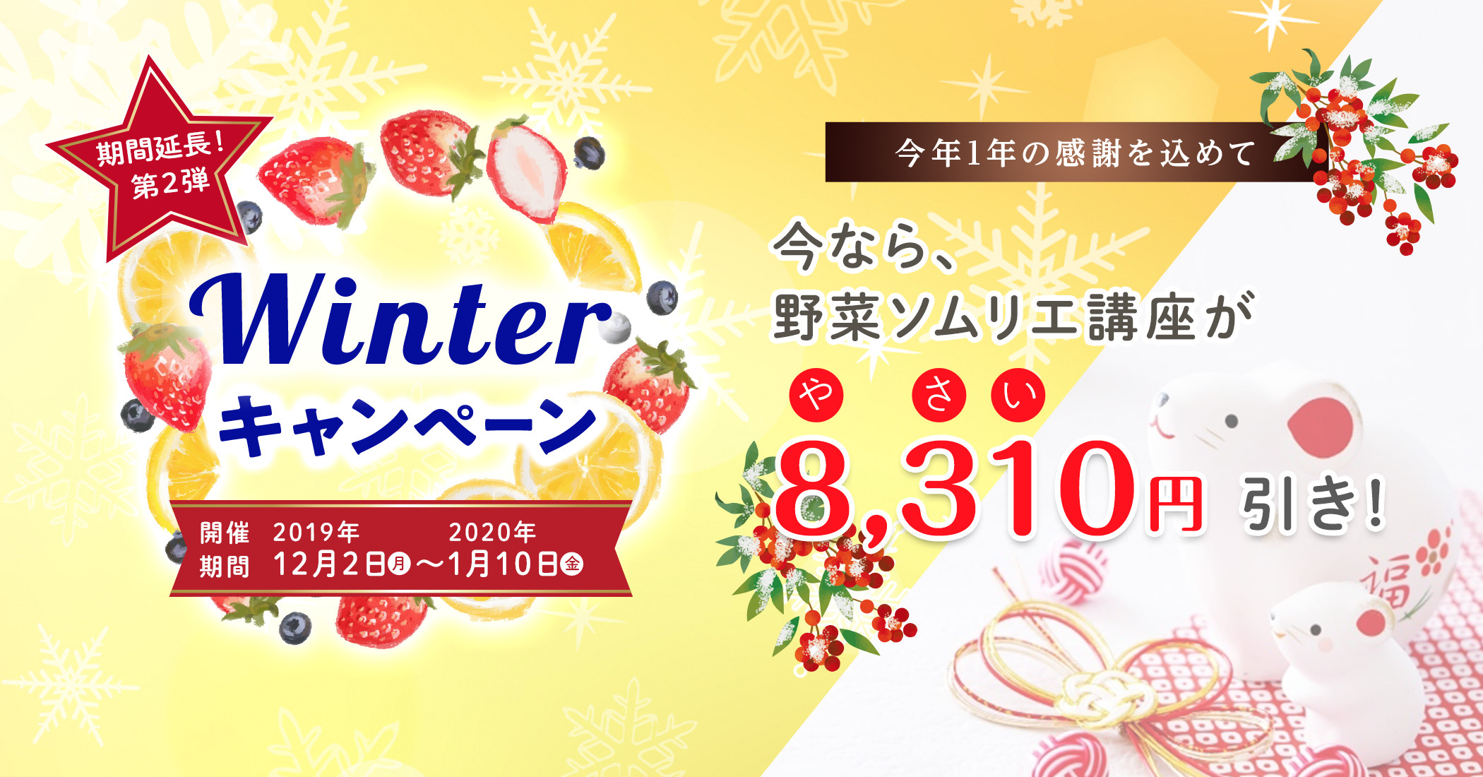 今、「野菜ソムリエコース」にお申し込みいただくと、受講料から8,310円(税込)引きの