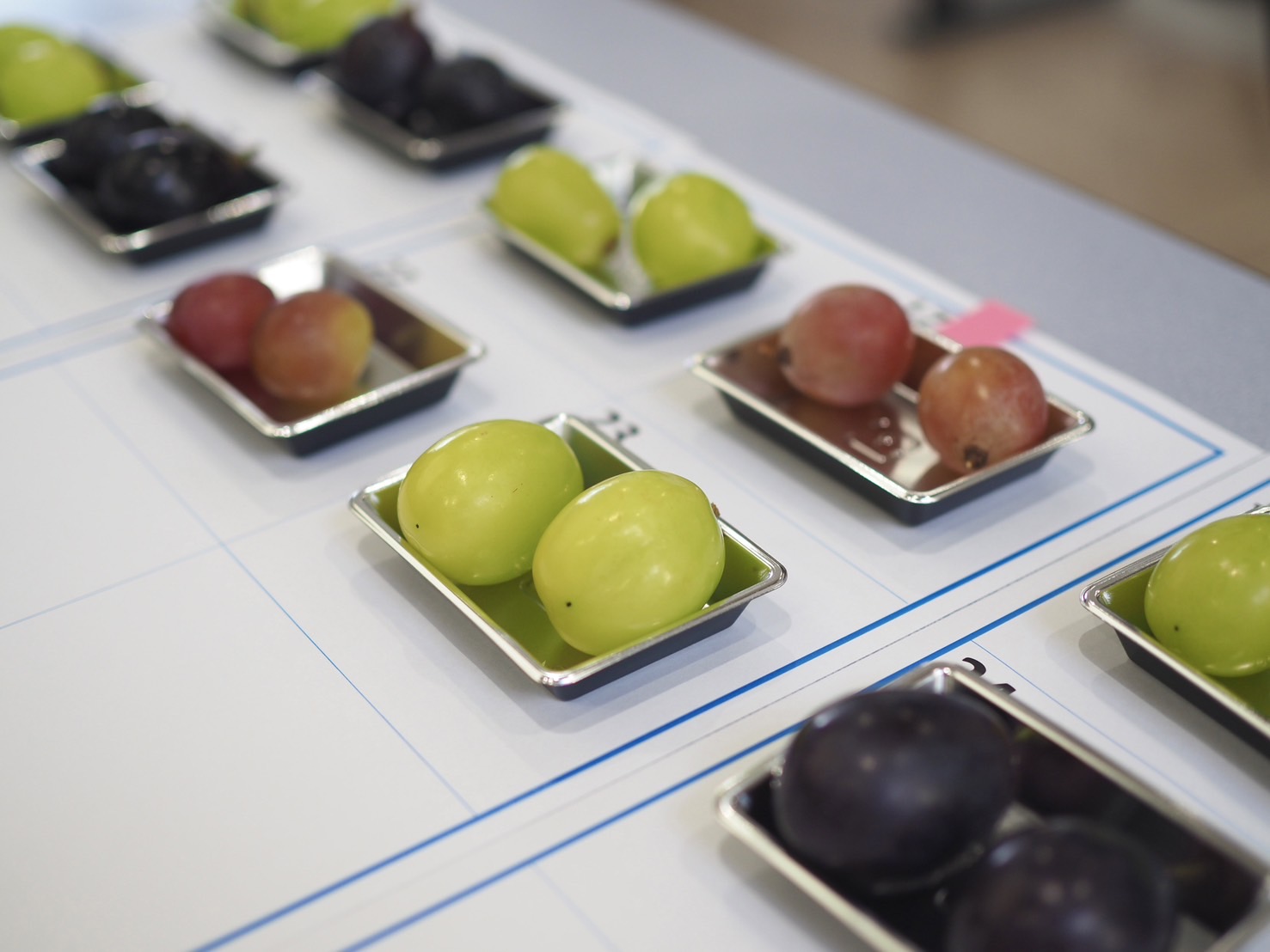 全国各地の産地から届いた26品のぶどうの中から、評価員である野菜ソムリエが商品名や産地、生産者情報などをすべて伏せて食味。そのおいしさを審査し、評価員全員の合計点数によって各賞を決定しました。