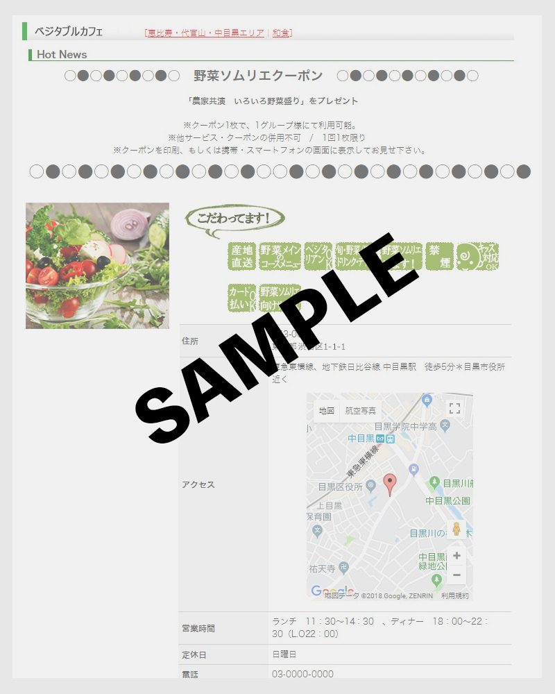 特別認定プラン限定 一般向けメルマガ”野菜大好き”にて店舗をご紹介させていただきます。