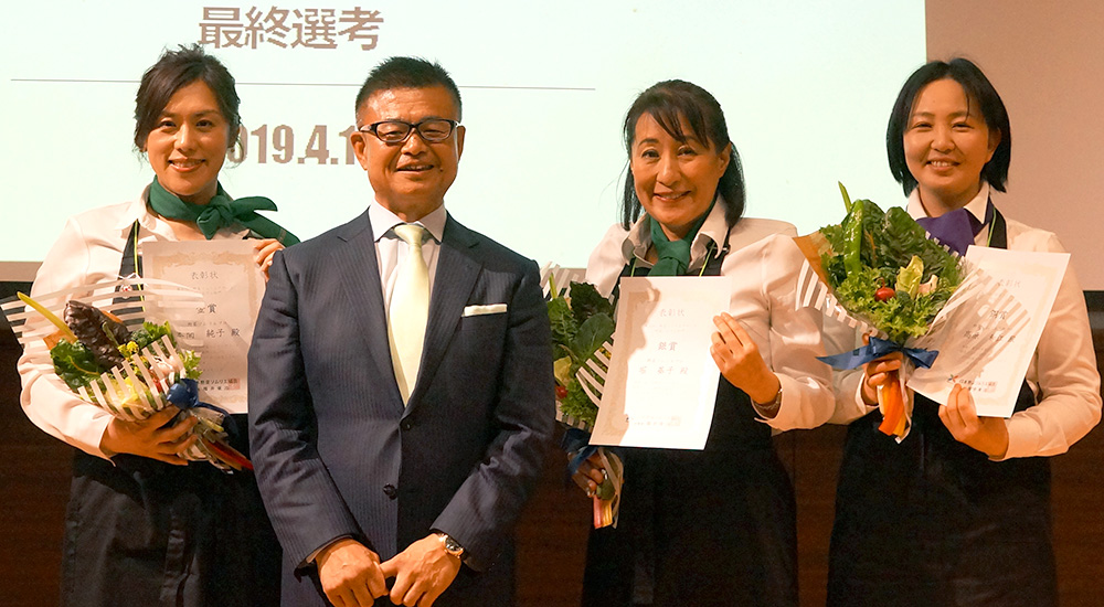 第8回野菜ソムリエアワード結果発表 2019年4月13日、第8回野菜ソムリエアワードの最終選考を開催いたしました。 審査員(特別審査員+参加者*野菜ソムリエ資格保有者)による投票で一番共感を得た発表者が選ばれました。 当日のプレゼンテーションの様子は、それぞれの動画視聴ボタンからご覧いただけます。 野菜ソムリエ部門 金賞 野菜ソムリエプロ 本間純子 (神奈川県)動画視聴 銀賞 野菜ソムリエプロ 堀 基子 (沖縄県)動画視聴 銅賞 野菜ソムリエ上級プロ 高原 和江 (千葉県)動画視聴 【特別審査員賞】今回は大変素晴らしい活動をされた方が多かったため、『特別審査員賞』を設けました。 野菜ソムリエプロ 手登根 節子(沖縄県)動画視聴 野菜ソムリエ上級プロ 山本 喜世憲 (福岡県)動画視聴 野菜ソムリエプロ 木村通子 (大阪府)動画視聴 野菜ソムリエプロ 大西真由美 (広島県)動画視聴 野菜ソムリエプロ 榊原妙 (愛知県)動画視聴 野菜ソムリエコミュニティ部門 金賞 野菜ソムリエコミュニティ福岡動画視聴 銀賞 野菜ソムリエコミュニティTOKYO動画視聴 銅賞 野菜ソムリエコミュニティ熊本動画視聴